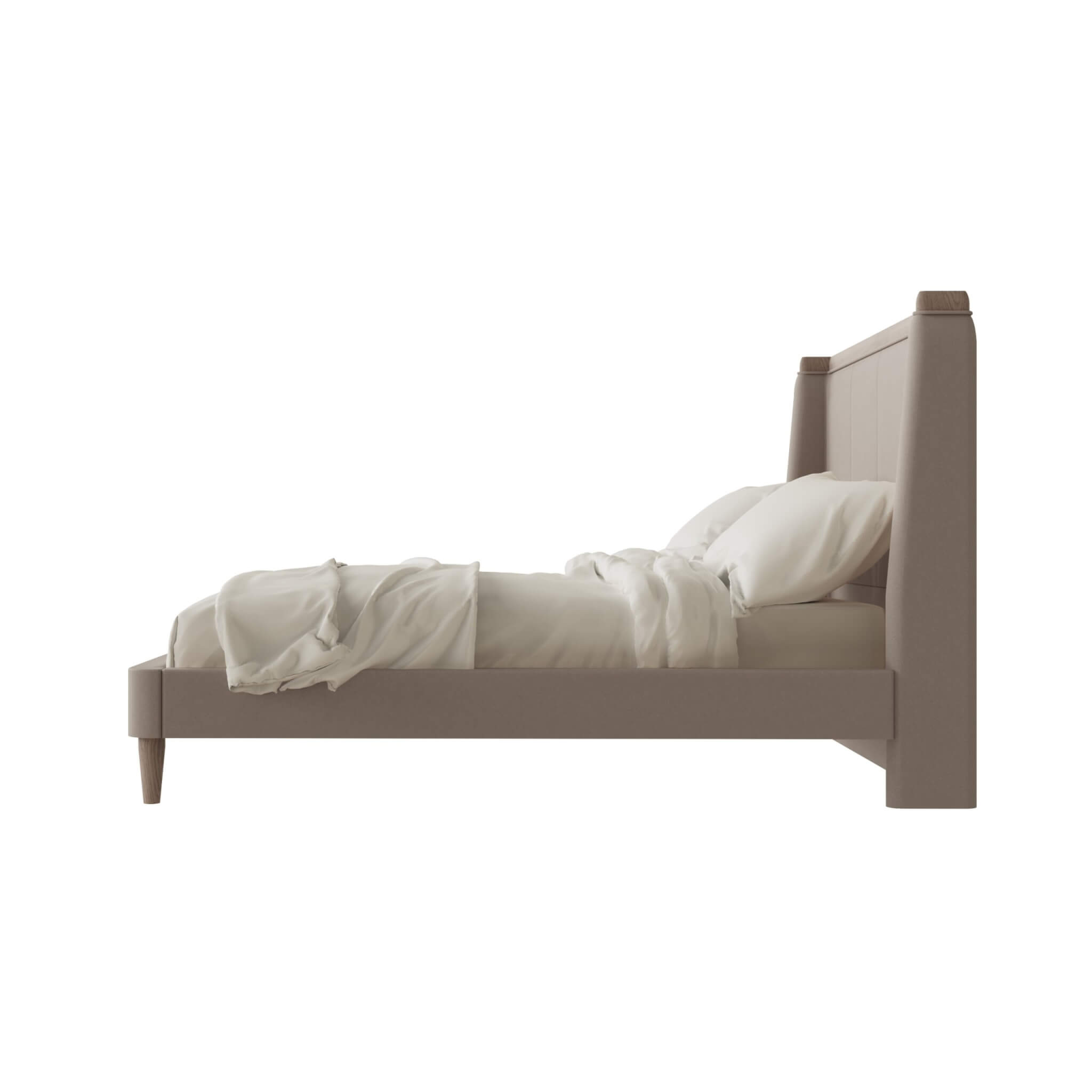 This stunning design is the perfect addition for any bedroom. Its soft, curved, rounded edges and beautiful, rich Natural colour make it stand out from your other offerings. The headboard and base of the bed are made with a luxurious fabric that has been carefully crafted to provide superior comfort and style. The wood grain Ash Veneer used in the construction adds a classic touch, instantly transforming any room.