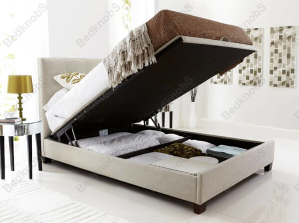 The Harvey features a high, extremely well padded headboard with modern button back detailing, a low footend and offers the most storage space within a bed frame by using a simple lift up process operated by gas struts, allowing you to place your belongings underneath the mattress.