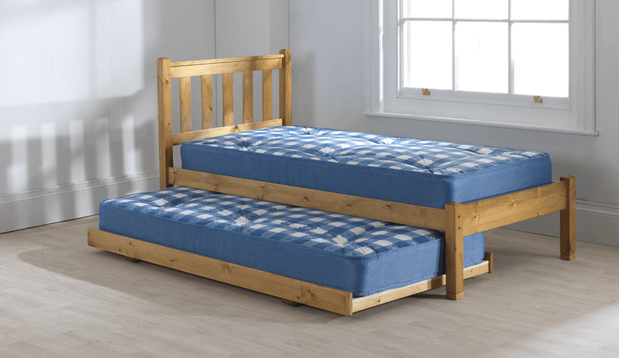 It features a low foot end with a beautiful headboard and an underbed for when you have guests staying over. You can either buy the Laker Guest Bed in either a Single (3ft) overbed with a Single (3ft) underbed OR Single (3ft) over with Small Single (2’6) underbed. The underbed has legs, which when flexed up, brings the second mattress up to the same height as the overbed.