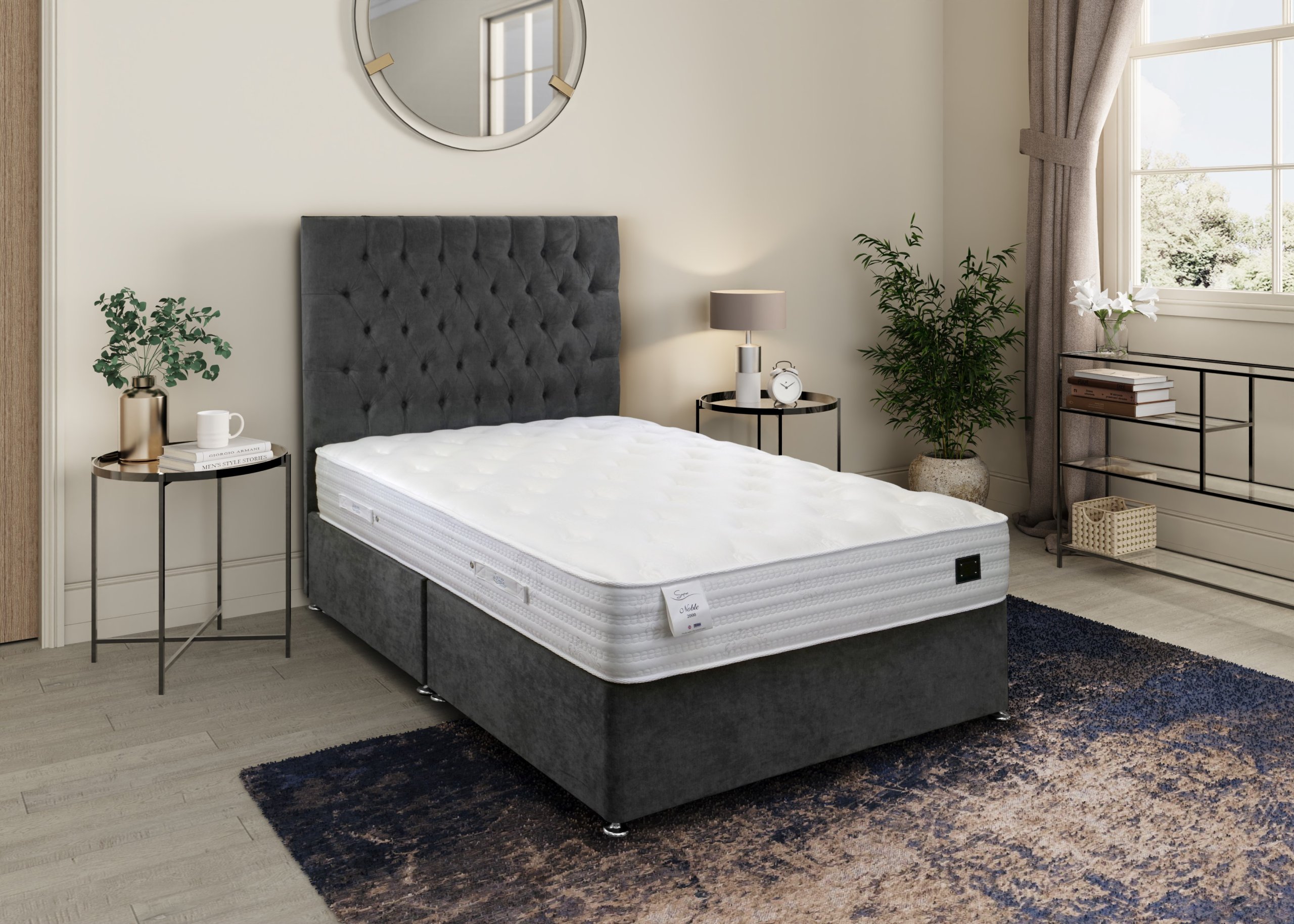 The Gel mattress comes with 2000 Luxury pocket springs and K-Gel foam layer with support layer of reflex foam. It has foam encapsulated sides and edge to edge support. The mattress is a medium feel and comes with a 5 year warranty. Single sided mattress – Regularly rotating the mattress will even the wear of the fillings and extend the overall lifespan. The Divan base is available in a large choice of colours and matching headboards are also available in a large choice of designs and colours. Other headboards are available, please see our headboard page. This Divan Set is available with all tailoring options.