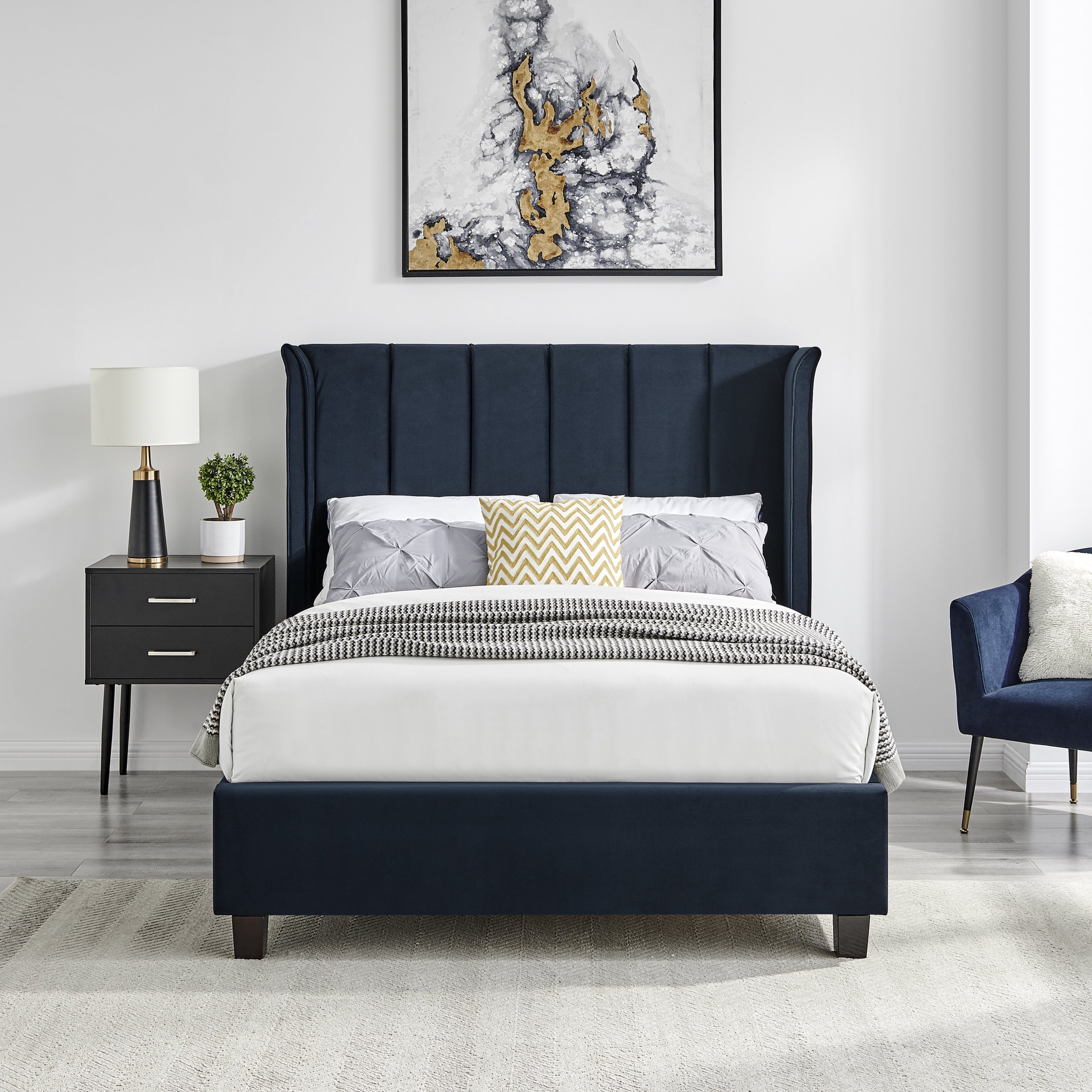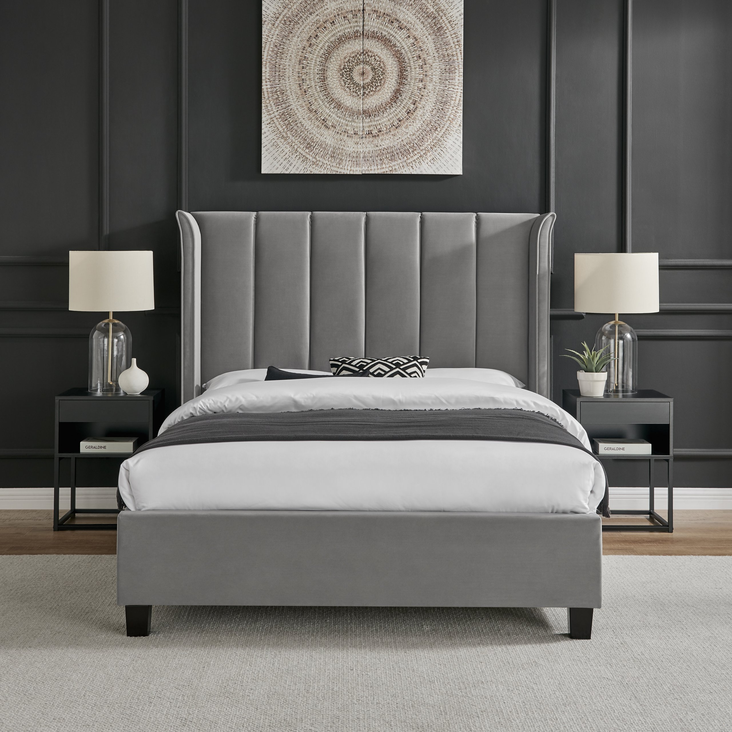 The Nordic is a Modern Style Bedstead upholstered in a Stunning Emerald, Navy, Natural and Silver available in Double and Kingsize.