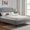 The Ruby is a Modern Style Bedstead upholstered in a Stunning Light Grey , Dark Grey or Natural Fabric available in Double and Kingsize.