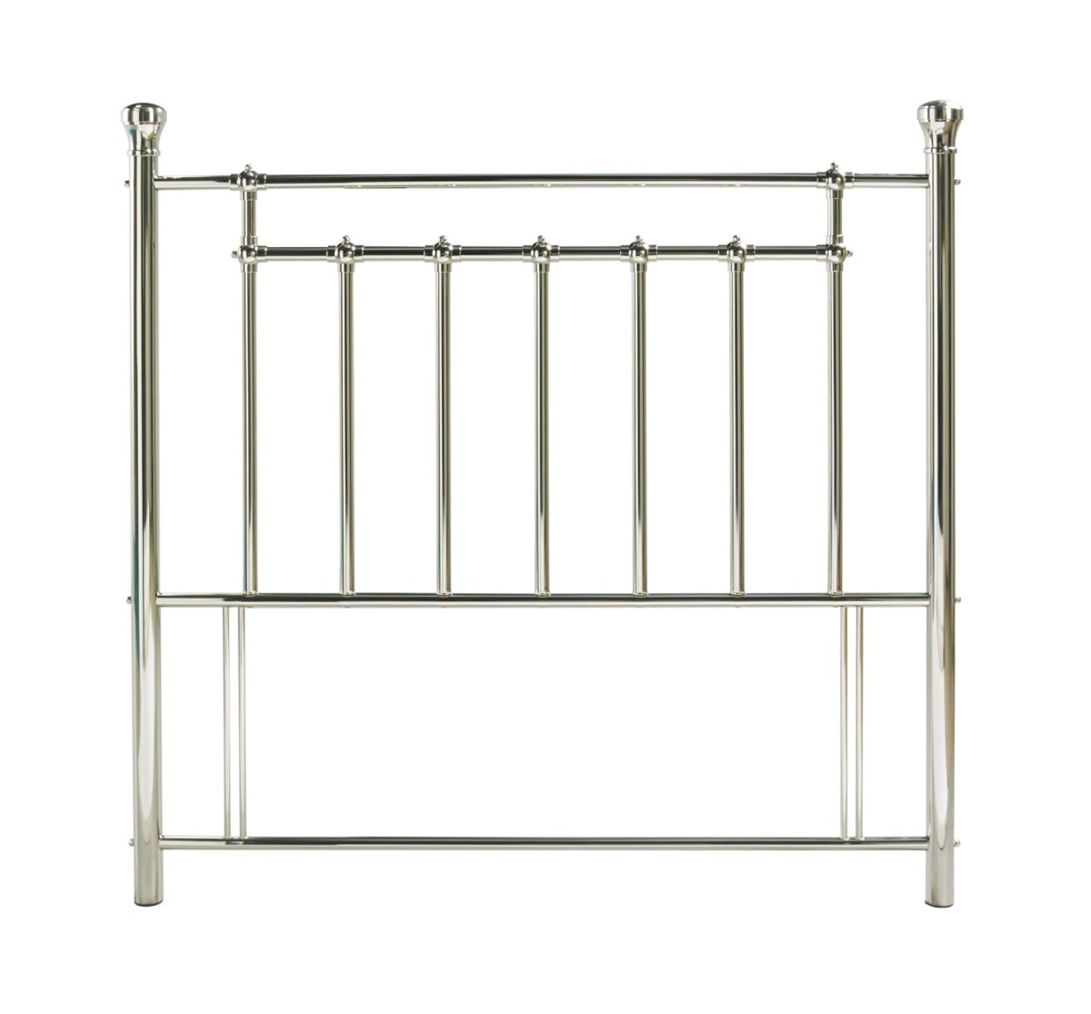 Kensington Shiny Nickel Metal Headboard available in double 4′ 6″ and kingsize 5′