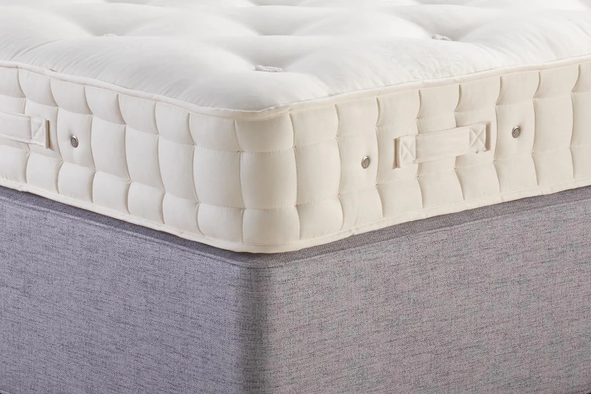 The Cotton Deluxe from Hypnos provides comfort and support for the body, with generous layers of sustainably sourced cotton and wool that is 100% British and traceable to Red Tractor assured farms. Contains two sheep fleeces, or 4.5kg, of pure wool per 150cm mattress, providing a different level of luxury. This no turn mattress features ReActivePro™ 7-turn pocket springs with Triple Edge Protection™ – higher tension edge springs, framed support and two rows of genuine hand side stitching. A breathable sleep surface woven from sustainably sourced, unbleached cotton and viscose. Safe and fire resistant without the use of FR chemicals. The Cotton Deluxe comes with a 10 year Guarantee.